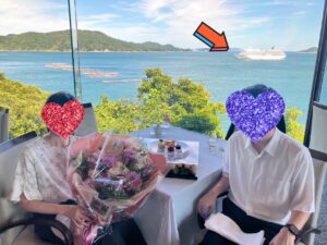 ご豪華客船「飛鳥Ⅱ」とのプロポーズ記念ショット![]()